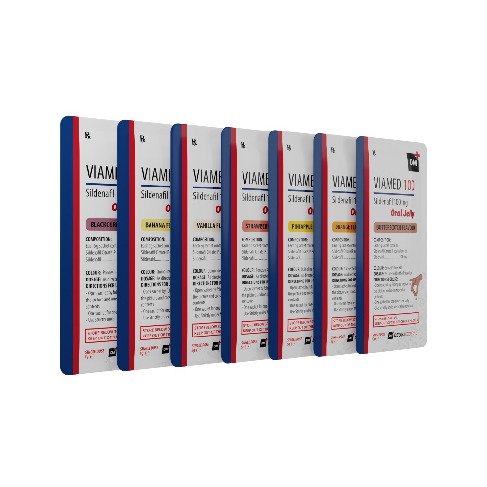 Each sachet contains 5g of jelly with 100mg of Sildenafil